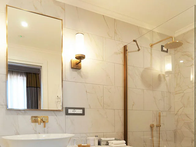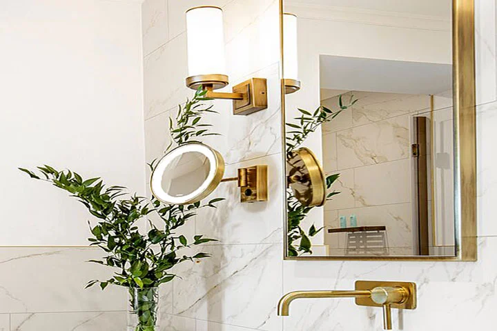 Miroirs non éclairés avec cadre de protection en laiton. Disponibles en plusieurs tailles.